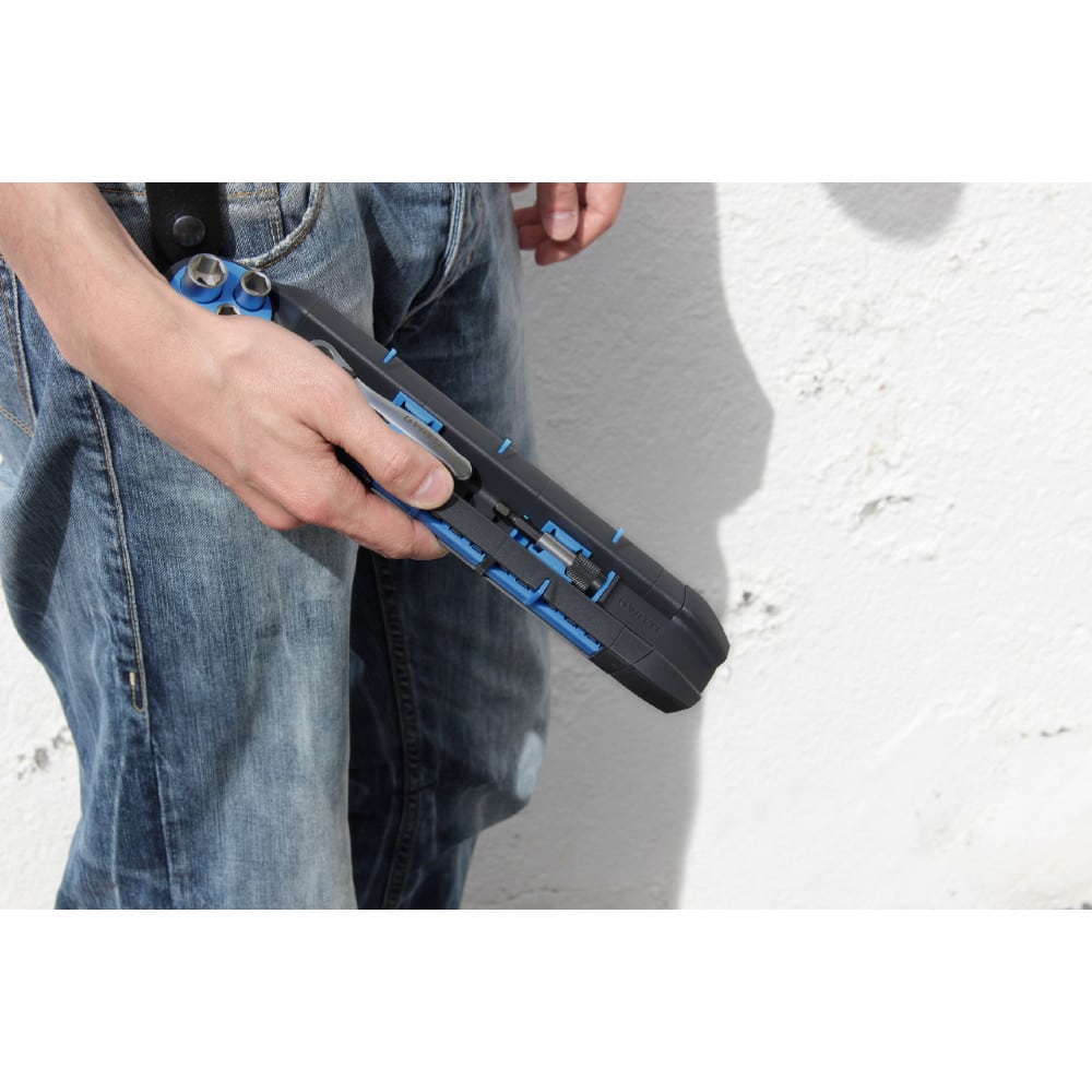 Vsa vključena orodja so zaščitena in hitro shranljiva. Priročne dimenzije in vsestranska uporabnost BITCOMMANDERJA omogočata hitro prilagodljivost zahtevam vsakega uporabnika.