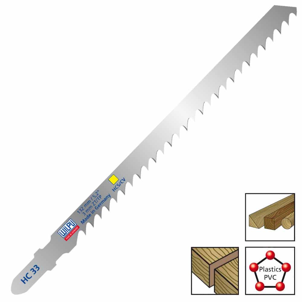 List vbodne žage WILPU HC 33, s konično brušenim, diagonalno naostrenim ozobljenjem, za čiste reze na vseh vrstah lesa in plastike debeline 8 do 65mm.