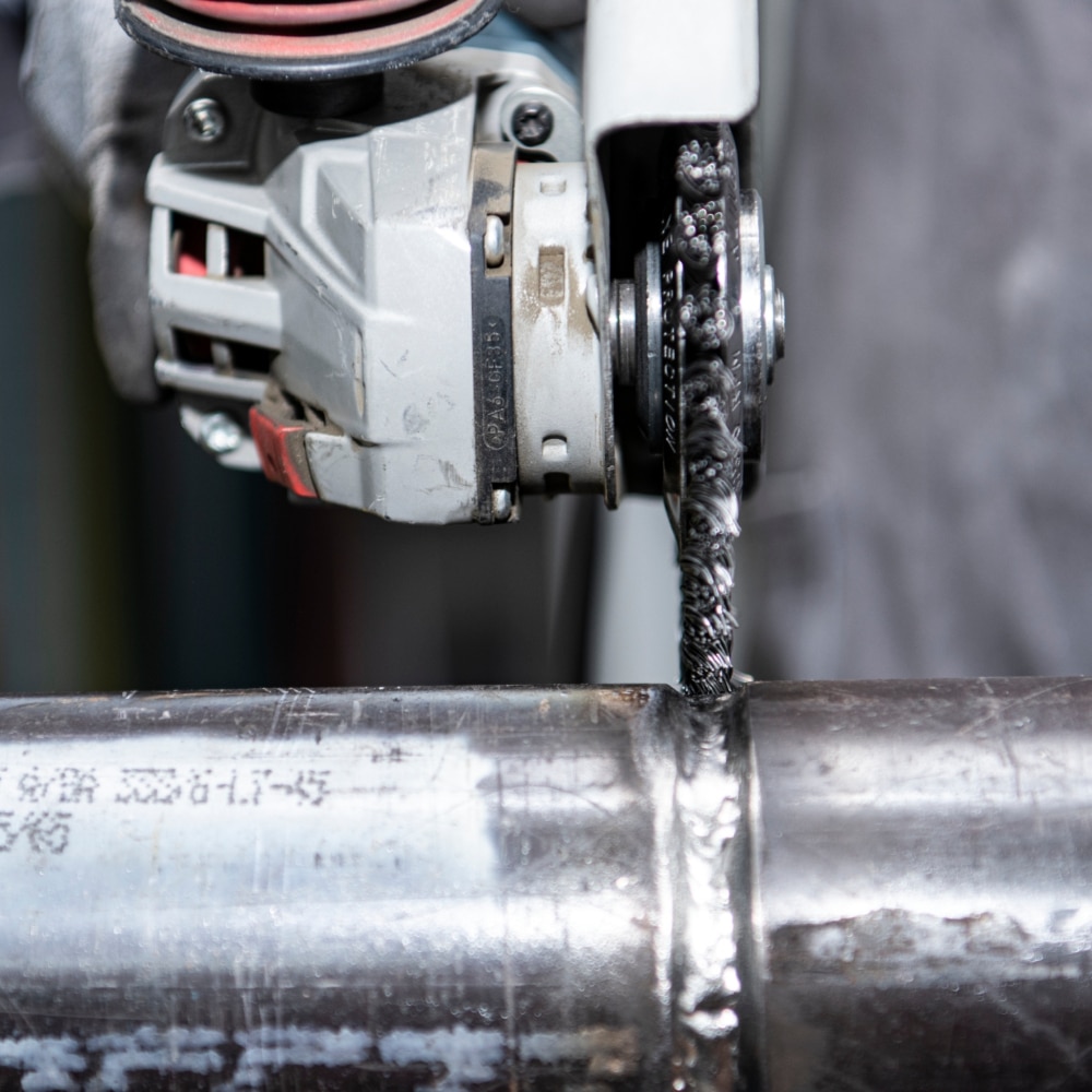 Okrogla žična ščetka Klingspor BRP 600 Z je namenjena obdelavi U/V zvarov pri izdelavi cevi, cevovodov in rezervoarjev, primerna za obdelavo težko dostopnih površin (npr. koreninskih ali ozkokotnih zvarov) – Čiščenje vseh zvarnih šivov na spojih cevi.