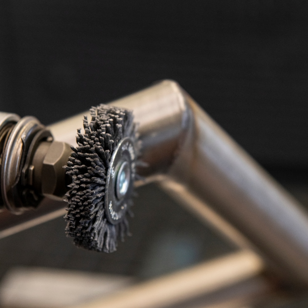 Poliamidna ščetka s trnom Klingspor BRS 600 P – za uporabo na nerjavečem jeklu, neželeznih kovinah in lesu.