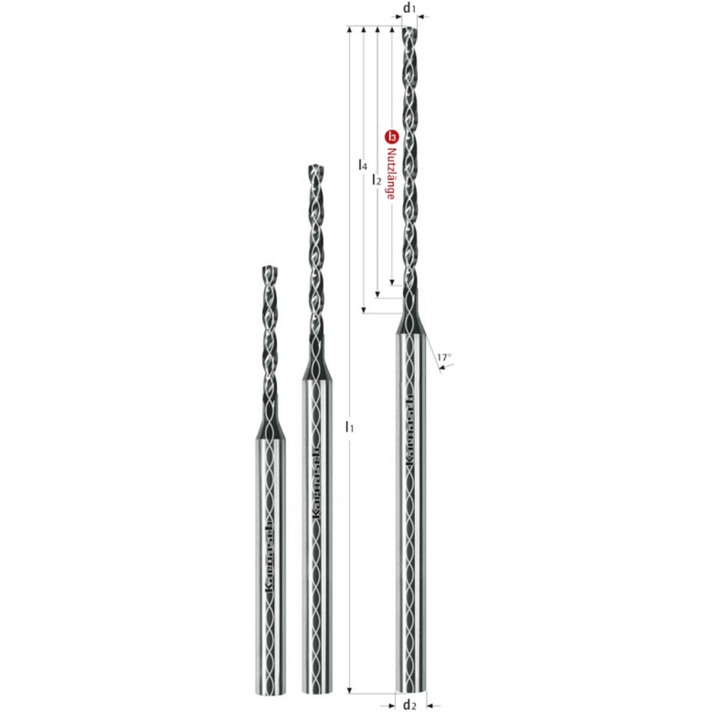 Visokozmogljivi VHM sveder KARNASCH MINI <30xD – z notranjim hlajenjem, za obdelavo jekel – do 1500 N/mm², nerjavečih jekel, titana, INCONEL-a, HASTELLOY-a, sivih litin